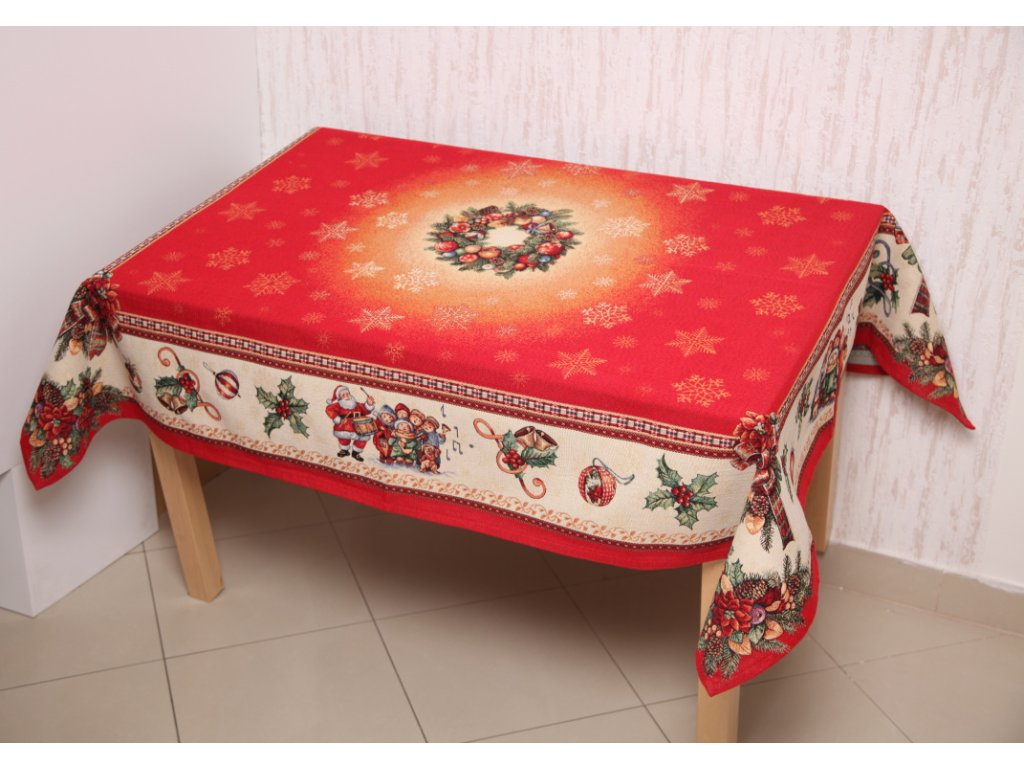 Vianočný gobelínový obrus 140x180 cm Červený veeniec