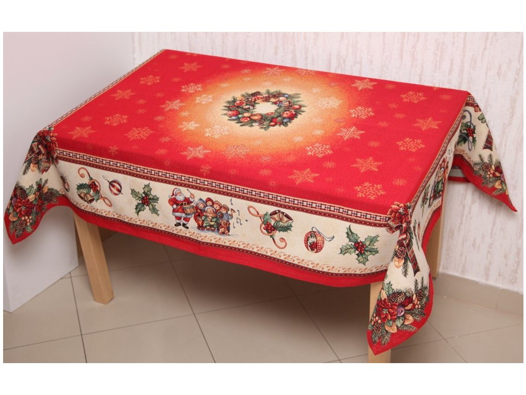 Vianočný gobelínový obrus 140x220 cm s dizajnom Červený veniec.